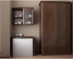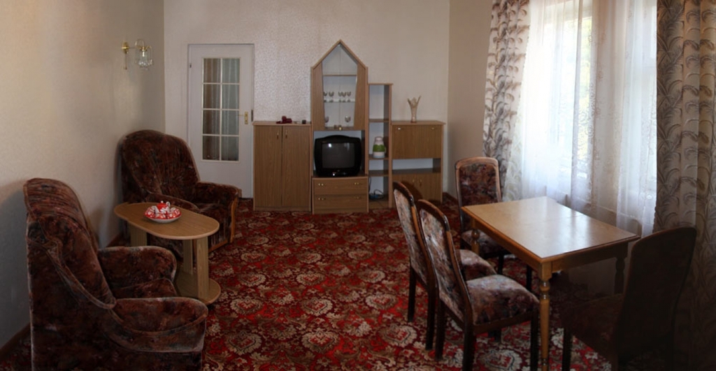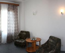 Состоит из спальни, гостиной, кухни. Имеется кондиционер зима-лето телевизор, холодильник.