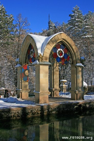 В Кисловодск стоит приехать уже ради одного курортного парка! Это не просто парк, это целая удивительная планета с красивыми скалами, бурлящими водопадами, зелеными лугами и бесчисленным количеством всевозможных растений! И не только растений — здесь живут разные животные, большинство из которых стали совсем «ручными». Например, белочки, ёжики и птички будут, не стесняясь, лопать семечки или орешки прямо из ваших рук! Сам парк как бы поднимается террасами вверх по склонам прекрасных Кавказских гор и делится на три части: нижний, средний и горный. Парк расположен на реке Ольховка, через которую построен прекрасный мостик, получивший название «Дамский каприз». Итак, мы в парке. Главный вход в парк — это полукруглое белоснежное двухъярусное сооружение с мощными колоннами. В нижнем ярусе колоннады продаются картины и украшения, а на верхнем ярусе когда-то размещался ресторан. Но есть еще одни ворота в парк — каскадная лестница. Это лестница с десятью колоннами, а по бокам вы увидите красивые бассейны с маленькими водопадами. Внизу лестницы плещутся фонтаны — очень красиво!