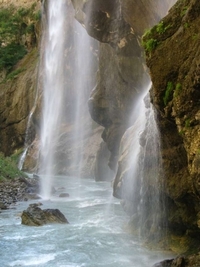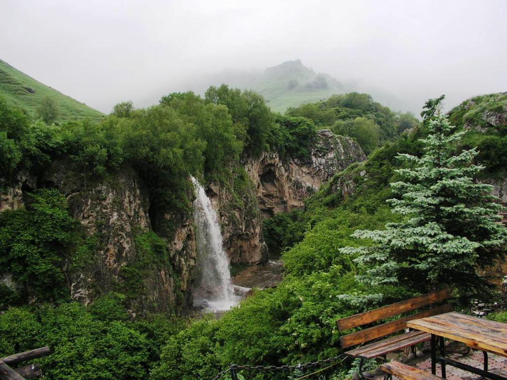 Что еще посмотреть в Кисловодске? Конечно же, уникальные памятники природы, сосредоточенные в окрестностях города. Одним из самых посещаемых памятников является гора Кольцо, где ветрами было образовано отверстие диаметром 11 метров. Вторая по популярности достопримечательность — Аликоновское ущелье с Медовыми водопадами. Говорят, что водопады получили такое название из-за пчел, устраивавших свои соты в горных расщелинах. Ливни размывали соты, и сладкая вода попадала в водопад, распространяя медовый запах по всей округе. Водопадов всего пять, все они красивы и уникальны по своему: от Большого водопада с радужным котлом до Жемчужного водопада с крупными каплями брызг. Недалеко от Кисловодска, на территории Карачаево-Черкессии в долине небольшой горной речки Аликоновки находится уникальное природное явление - Медовые водопады. Среди великолепия гор, в окрестностях города-курорта Кисловодска неподалеку от Замка «Коварства и Любви», в ущелье реки Аликоновки, в живописном месте, рядом с группой водопадов, находится самый большой водопад «Медовый» сбрасывается с высоты 18 метров. Водопад «Медовый», «Жемчужный» и еще три водопада поменьше. Они постоянно окутан облаками водной пыли. Мимо водопадов проложены тропы через пороги и скалы. В жаркие дни у водопадов всегда прохладно, а в те часы, когда в ущелье заглядывает солнце, брызги воды играют и искрятся всеми цветами радуги. Против водопадов возвышается огромная скала, похожая на нос корабля. Она носит название «Указатель». Медовые водопады образовались в результате прорезывания горных пород в ущелье Аликоновки. Все лето здесь, на склонах долины, цветут медоносные травы, от которых, очевидно, и произошло название водопадов. Легенда говорит о том, что когда-то, в скалах, где сейчас водопад жили дикие пчелы, и во время весеннего паводка от меда, который вымывался, вода в речке становилась сладкой. Знакомство начинается с «Жемчужного» водопада, затем из под скал незаметно выбегает сток Секретного, его сменяет Змейка, струящаяся по отвесной скале, а меж двух валунов прорывается Мельница. Рассыпающиеся брызгами воды реки Аликоновки усиливают ионизацию воздуха, чему также способствуют розовые граниты каньона. Здесь никогда не чувствуется летний зной. Тень зарослей лещины и свежесть от пенящихся потоков делают каньон уютным и привлекательным. Пешеходная прогулка по каньону палеозойских гранитов среди пяти водопадов заканчивается у главного 18-ти метрового под названием «Медовый». Главный водопад имеет родниковый исток и является притоком реки Аликоновки, от него и повелось называть сеть водопадов Медовые, хотя каждый из них имеет свой сток, по которому и получил название. Прогулка по ущелью Скалистого хребта среди водопадов – одна из самых впечатляющих в экскурсиях по окрестностям Кисловодска.